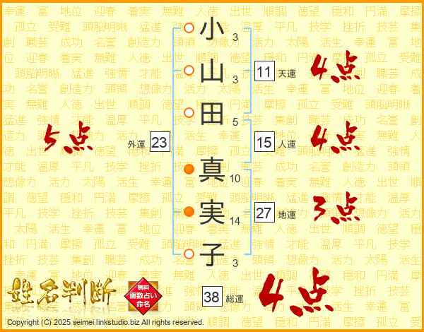 小山田真実子さんの総運は38画の4点!