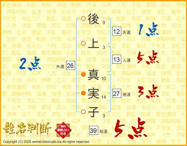 後上真実子さんの総運は39画の5点!