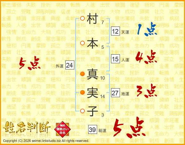 村本真実子さんの総運は39画の5点!