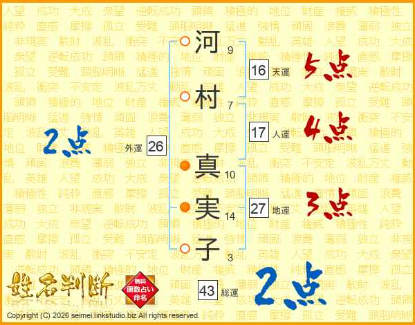 河村真実子さんの総運は43画の2点!