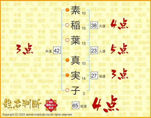 素稲葉真実子さんの総運は65画の4点!