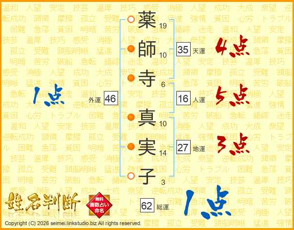薬師寺真実子さんの外運は46画の1点!