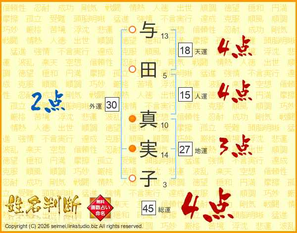 与田真実子さんの総運は45画の4点!