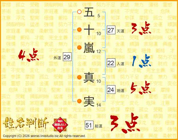 五十嵐真実さんの総運は51画の3点!