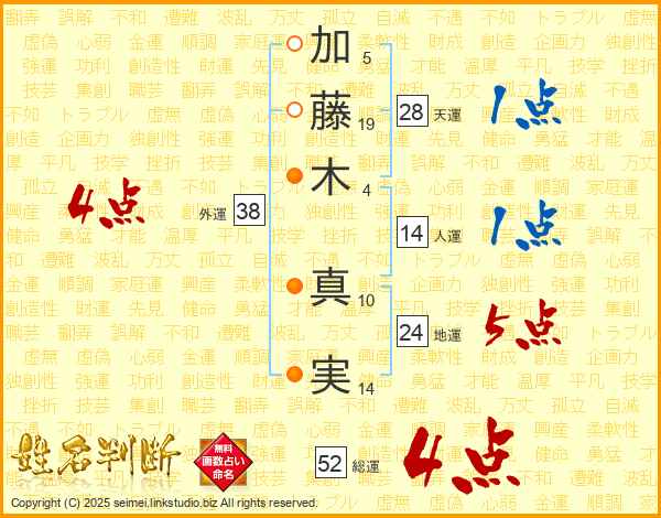 加藤木真実さんの総運は52画の4点!