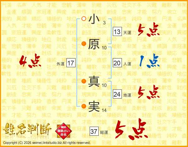 小原真実さんの総運は37画の5点!