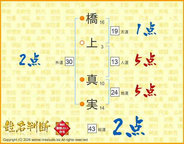 橋上真実さんの人運は13画の5点!