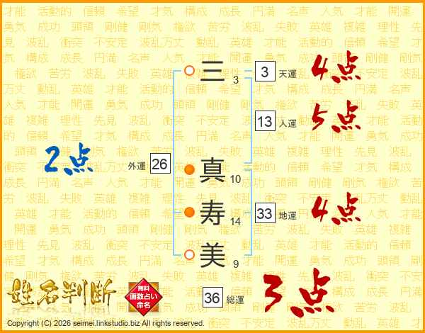 三真寿美さんの総運は36画の3点!