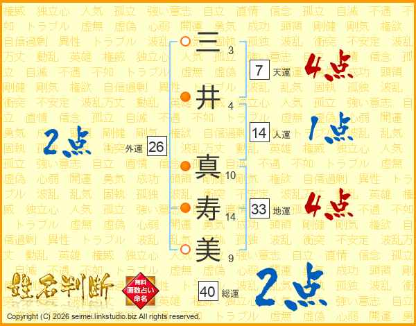 三(3画)井(4画) 真(10画)寿(14画)美(9画)