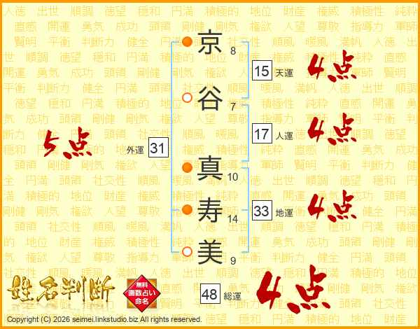 京(8画)谷(7画) 真(10画)寿(14画)美(9画)