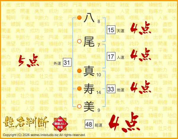 八尾真寿美さんの地運は33画の4点!