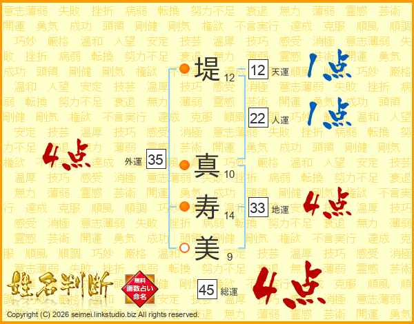 堤真寿美さんの総運は45画の4点!