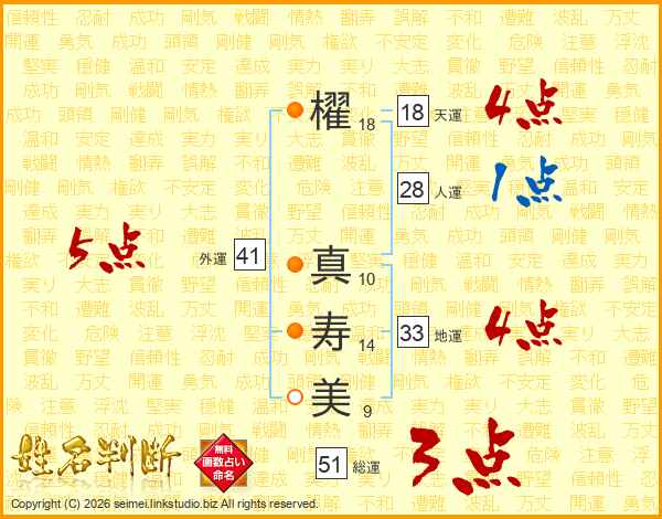櫂真寿美さんの総運は51画の3点!