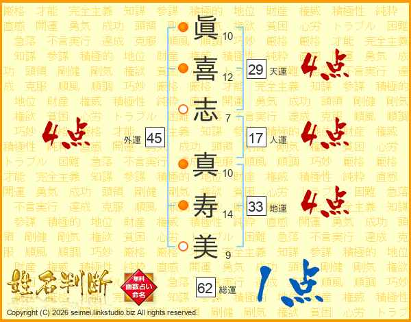 眞喜志真寿美さんの人運は17画の4点!