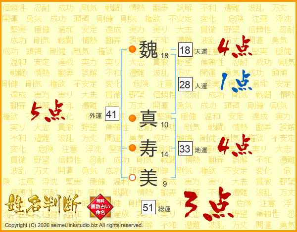 魏真寿美さんの総運は51画の3点!
