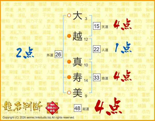 大越真寿美さんの総運は48画の4点!