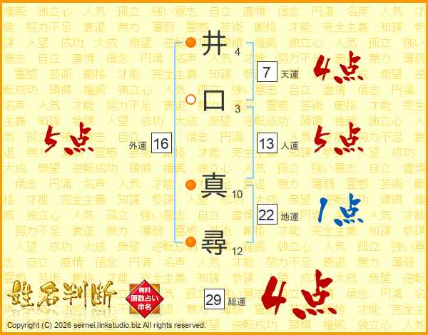 井口真尋さんの総運は29画の4点!