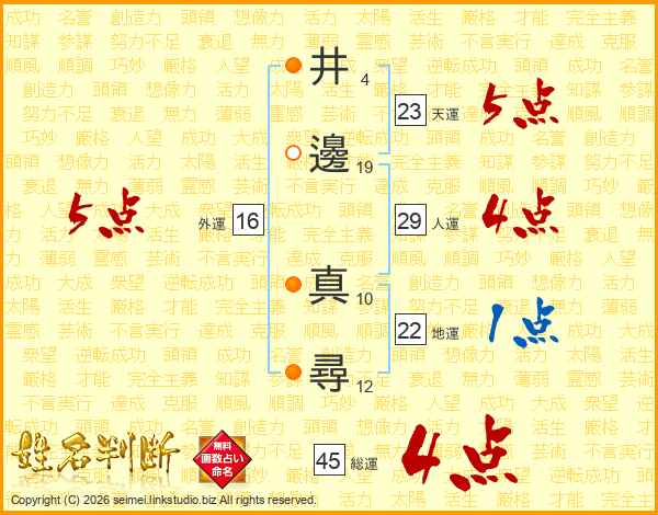 井邊真尋さんの総運は45画の4点!