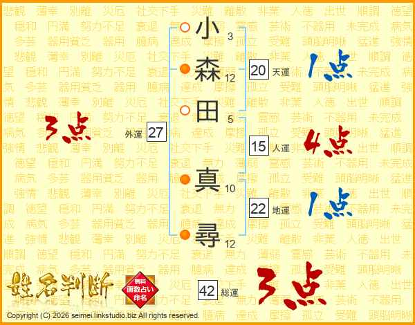 小(3画)森(12画)田(5画) 真(10画)尋(12画)
