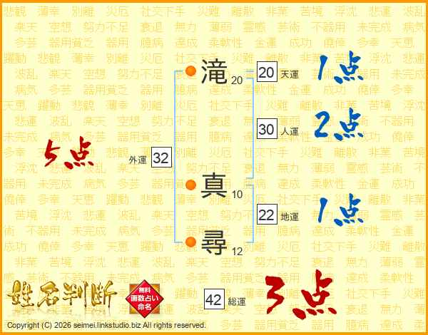 滝真尋さんの外運は32画の5点!
