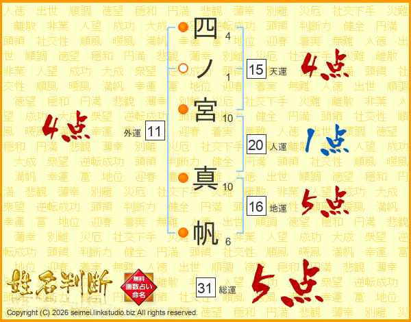 四ノ宮真帆さんの総運は31画の5点!