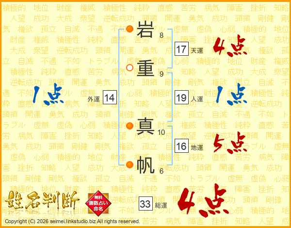 岩重真帆さんの総運は33画の4点!