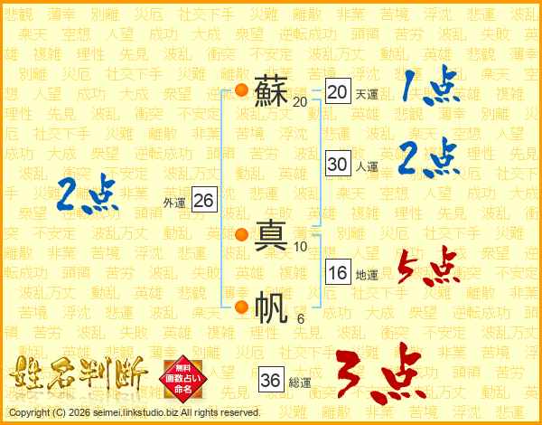 蘇真帆さんの総運は36画の3点!