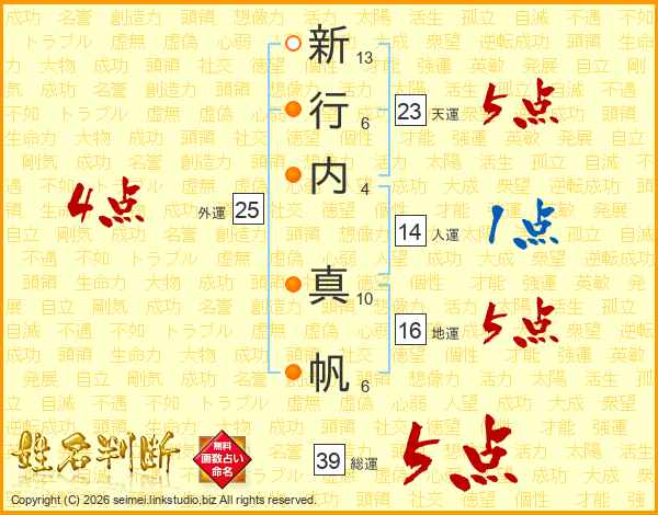 新行内真帆さんの総運は39画の5点!