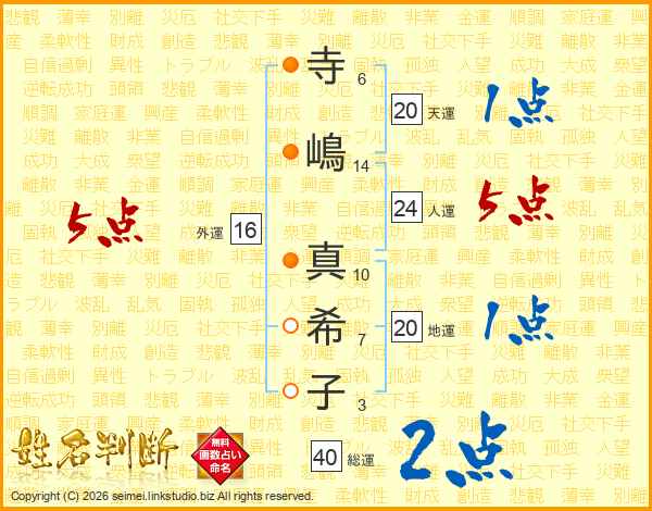 寺嶋真希子さんの総運は40画の2点!