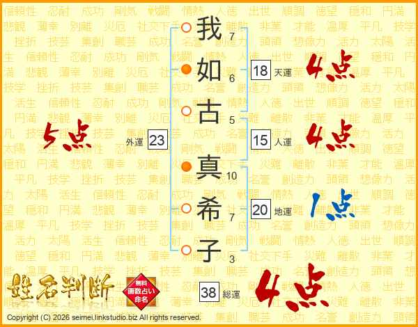 我(7画)如(6画)古(5画) 真(10画)希(7画)子(3画)