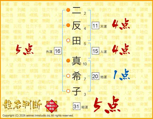 二反田真希子さんの総運は31画の5点!