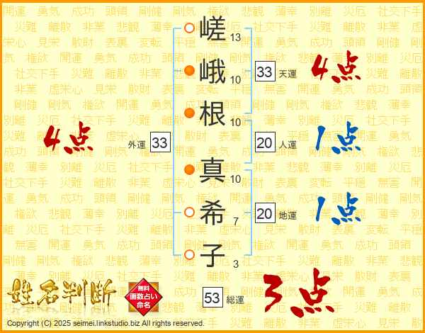 嵯峨根真希子さんの外運は33画の4点