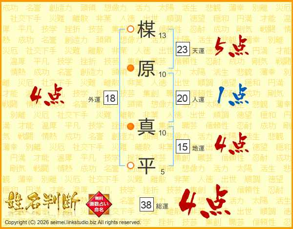 楳原真平さんの総運は38画の4点!