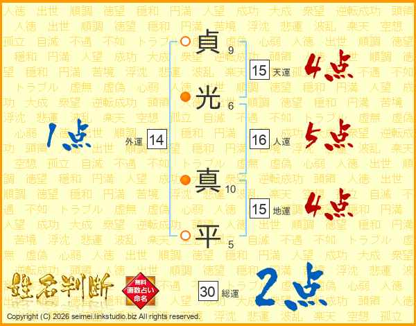 貞光真平さんの総運は30画の2点!