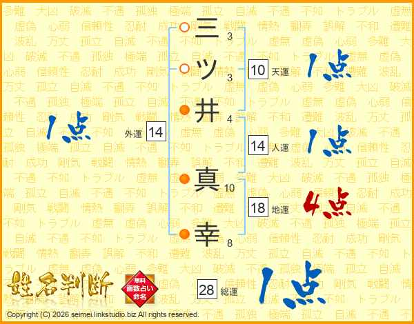 三ツ井真幸さんの地運は18画の4点!