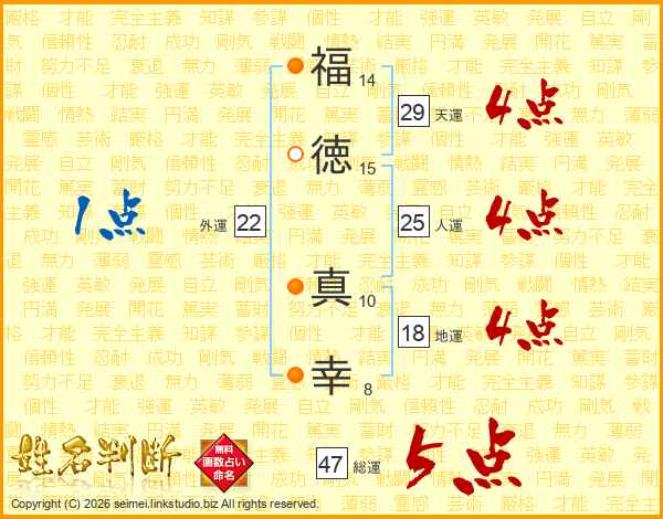 福徳真幸さんの総運は47画の5点!