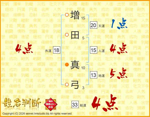 増田真弓さんの総運は33画の4点!