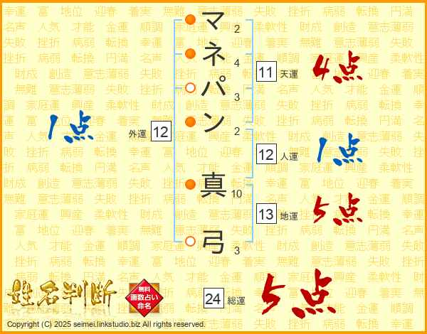 マ(2画)ネ(4画)パ(3画)ン(2画)  真(10画)弓(3画)