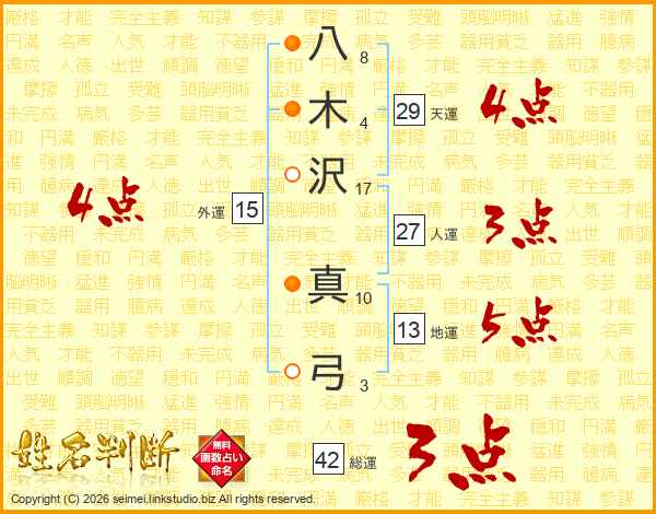 八木沢真弓さんの天運は29画の4点!
