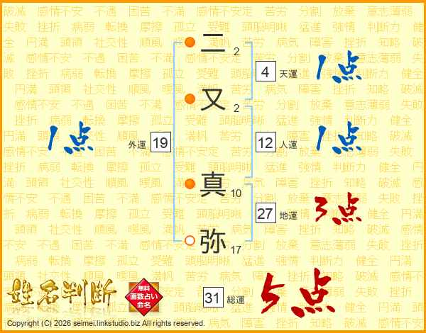 二又真弥さんの総運は31画の5点!