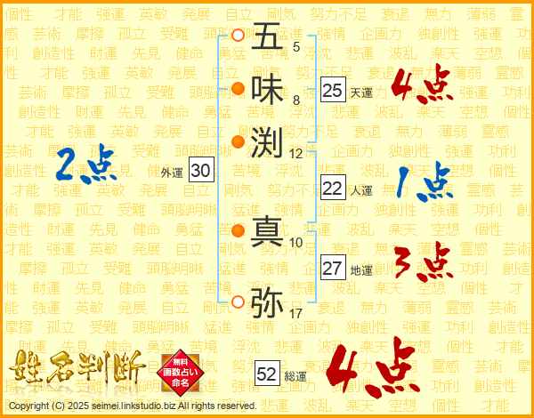 五(5画)味(8画)渕(12画) 真(10画)弥(17画)