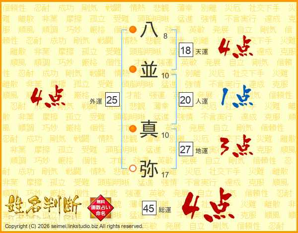 八(8画)並(10画) 真(10画)弥(17画)