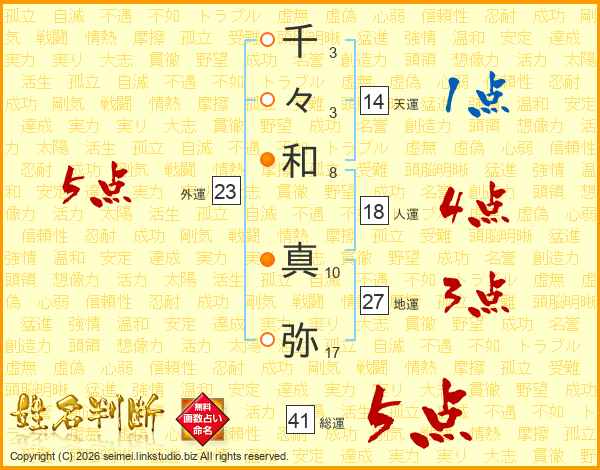 千(3画)々(3画)和(8画) 真(10画)弥(17画)