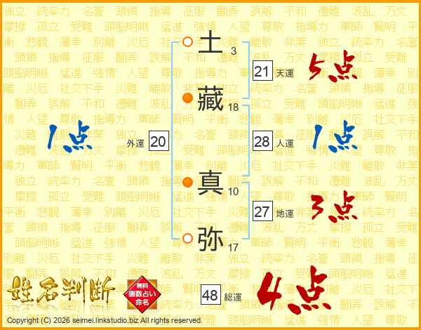 土藏真弥さんの総運は48画の4点!