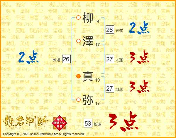 柳澤真弥さんの天運は26画の2点!