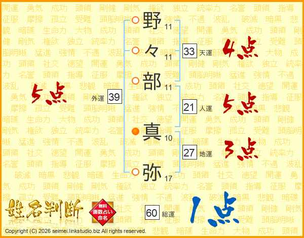 野々部真弥さんの人運は21画の5点!