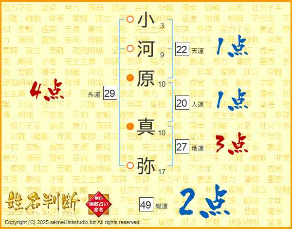 小(3画)河(9画)原(10画) 真(10画)弥(17画)