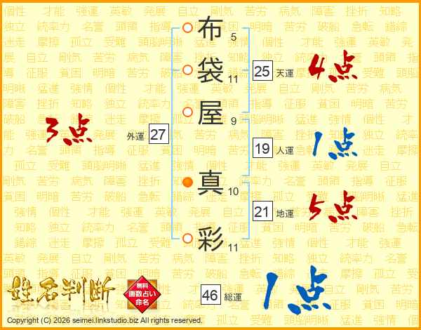 布袋屋真彩さんの総運は46画の1点!