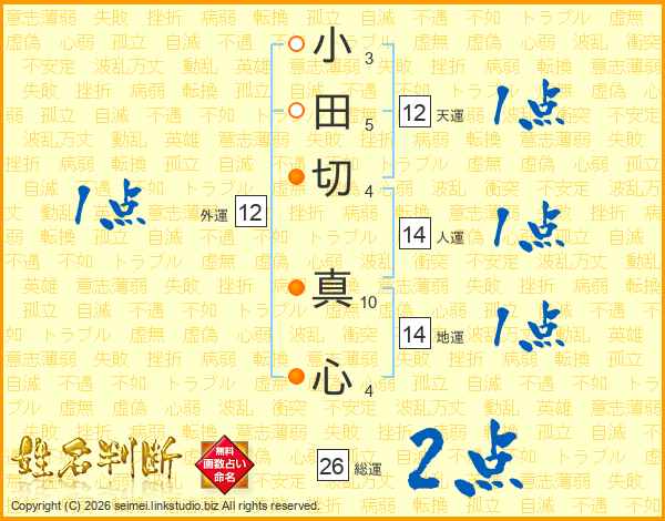 小田切真心さんの総運は26画の2点!