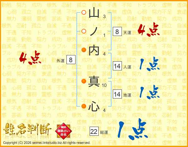 山ノ内真心さんの人運は14画の1点!